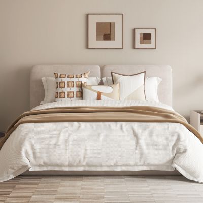 首页 / 家居装饰 / 样板房床品主卧棕色驼色系简约拼接绣花现代样板间床上用品8件套