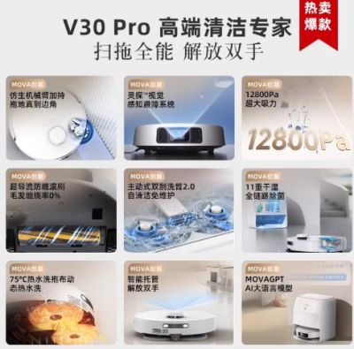 首页 / 生活小电器 / MOVA扫地机器人V30 Pro机械臂自动清洗扫拖吸官翻机